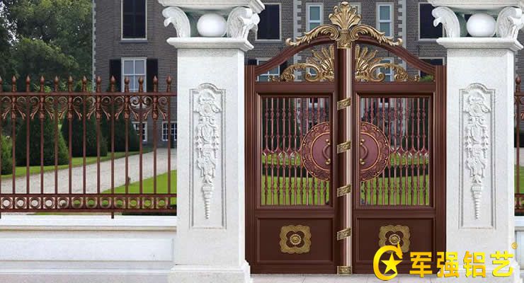 時間:2020-05-08 13:14:21 次數(shù):711 來源:軍強庭院門本款庭院大門,型號是6861,任何尺寸均可定做,鏤空門扇采用各種尺寸鋁型材及鋁花拼接而成,實心門扇采用整體鑄鋁板而成。